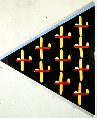 As subjects evolve, the instinct to assign “meaning” to an unfamiliar visual situation remains the content of my work. The successful paintings elicit a cognitive search to interpret or understand an image even while, intentionally, it cannot be definitively understood. I have come to refer to this situation as a “Zombie Symbolism”, in which combinations of form and image appear to contain some kind of message or meaning but are actually dead and empty of both.